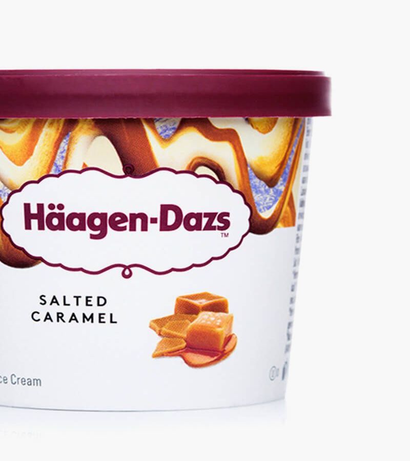 Häagen-Dazs ice cream pint. Real indulgence with just four ingredients: real cream, milk, eggs and sugar. Häagen-Dazs is blended with carefully selected ingredients, to create a luxury ice cream with a unique velvety texture and unforgettable taste. Indulge in our extraordinary Häagen-Dazs Vanilla Ice Cream or treat yourself to a unique dessert with our Salted Caramel Ice Cream recipe.